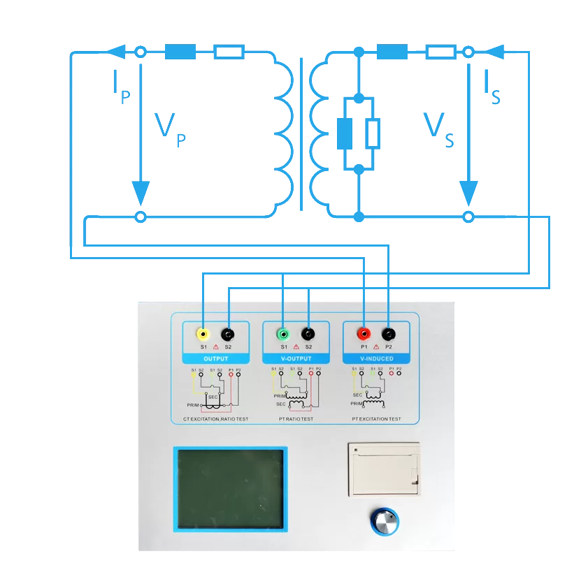 | Handling | The heavy equipment requires several people to set up and perform the test | Rewiring is required between single tests (for example, ratio, polarity, saturation, winding resistance) Results must be assessed manually | Test results must typically be evaluated manually Special attention has to be given to high-voltage leads and connections | One-button test Integrated report Fast (< 2 min) |